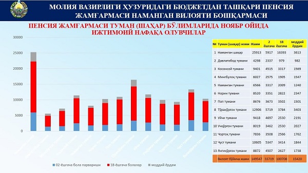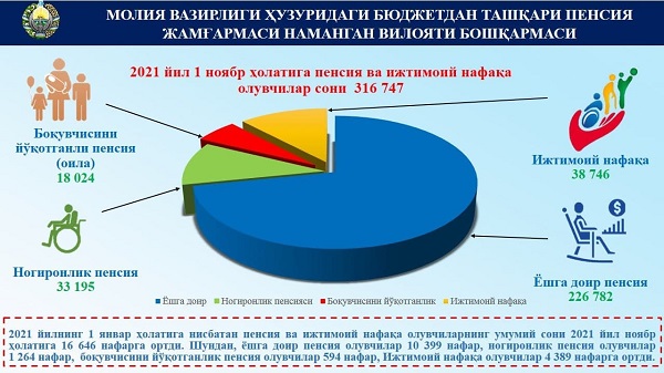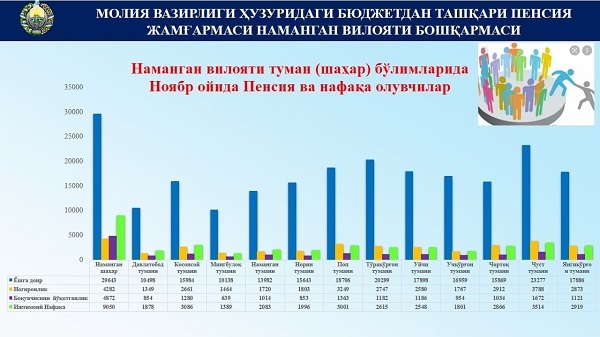 Наманган вилояти бўйича айни кундаги пенсия ва ижтимоий нафақа олувчилар тўғрисида умумий маълумот